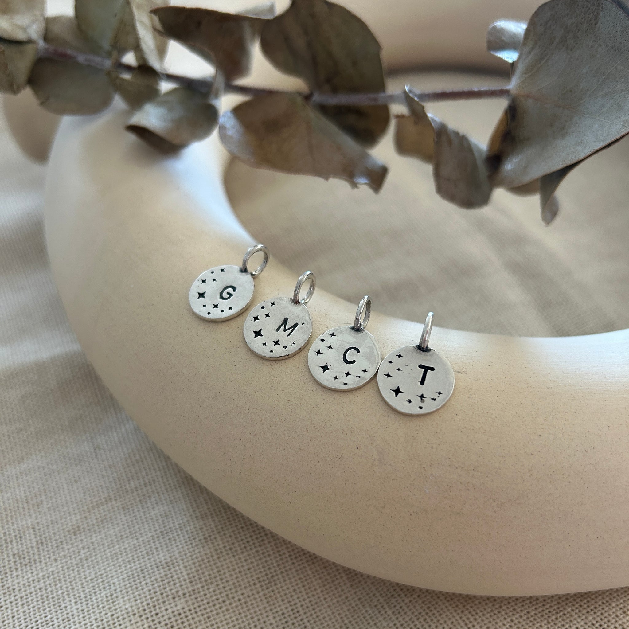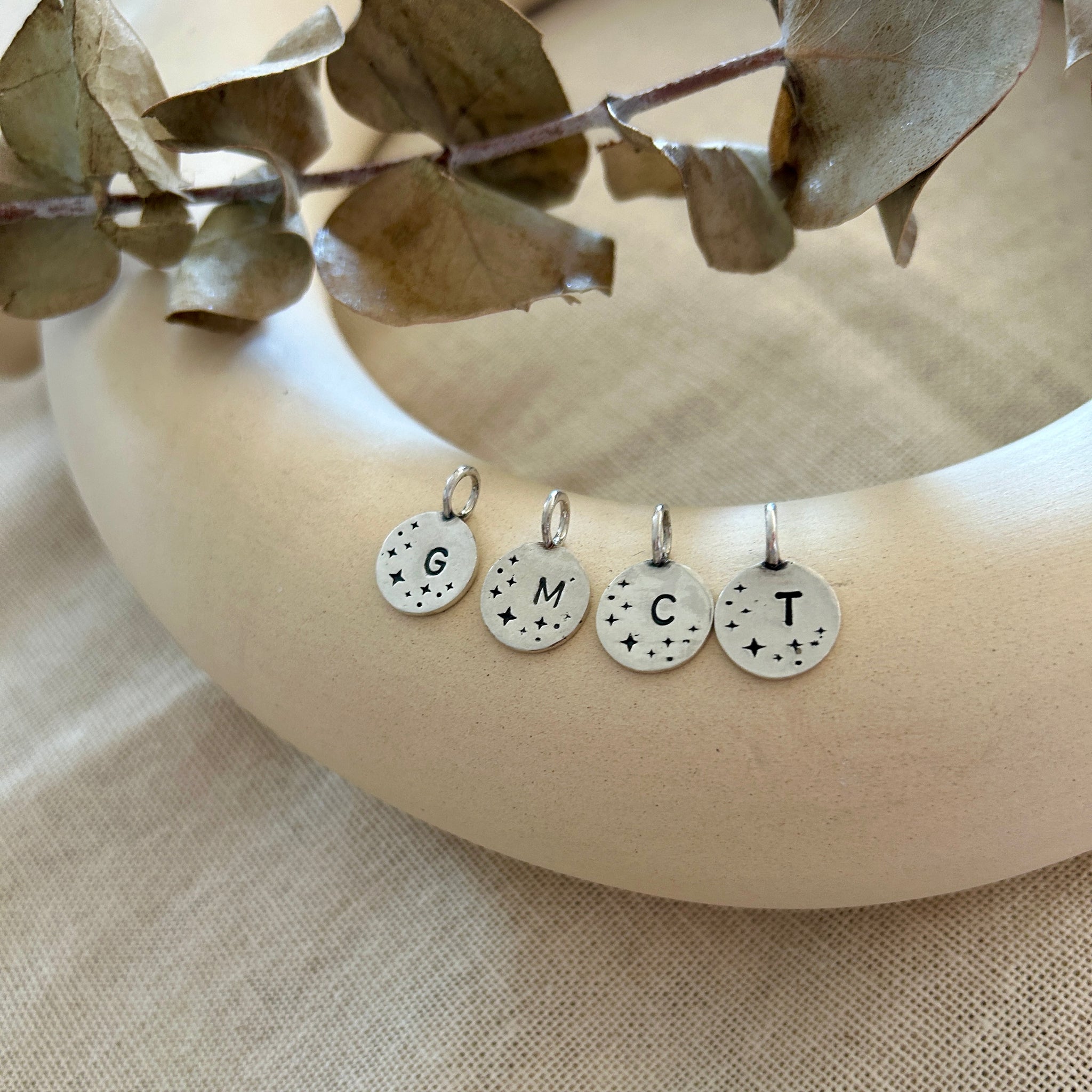 Nuestras medallas de plata con diseño de estrellas, personalizables con la inicial que elijas. Estas piezas únicas combinan elegancia y significado, convirtiéndose en un símbolo especial para ti o un regalo inolvidable. Perfectas para resaltar tu estilo y recordar siempre lo que más importa.